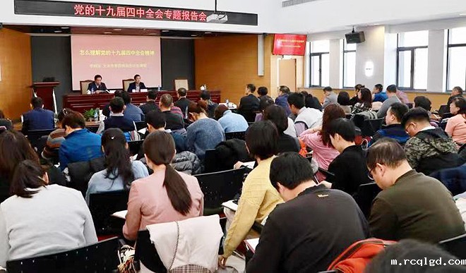 李明圣从党的历史、现代化历史和人类历史发展三个维度分析了四中全会的重要意义,从深刻把握会议主题、理解制度优势坚定制度自信、领会《决定》主要内容、加强党的领导确保目标实现四个方面,深入浅出地解读了全会精神。
