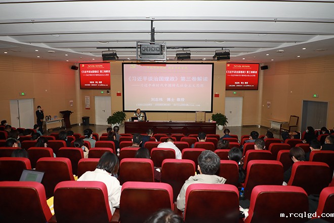 刘教授将《习近平谈治国理政》第三卷(以下简称“第三卷”)与第一卷、第二卷作为一个整体,带领大家回顾了第三卷书目出版的时代背景、主要内容和精神要义。重点围绕第三卷的开篇之作——《决胜全面建成小康社会,夺取新时代中国特色社会主义伟大胜利》,深刻阐释了习近平新时代中国特色社会主义思想的重大意义,是新时代中国共产党的思想旗帜,是国家政治生活和社会生活的根本指针,是当代中国马克思主义、21世纪马克思主义,为实现中华民族伟大复兴提供了行动指南。他从新时代、新思想、新方略、新使命、新征程等五个方面对习近平新时代中国特色社会主义思想的核心要义进行了详细解析,从辩证思维、战略思维、创新思维、历史思维、法治思维、底线思维等六个方面阐释了如何运用习近平新时代中国特色社会主义思想精髓指导实践工作。