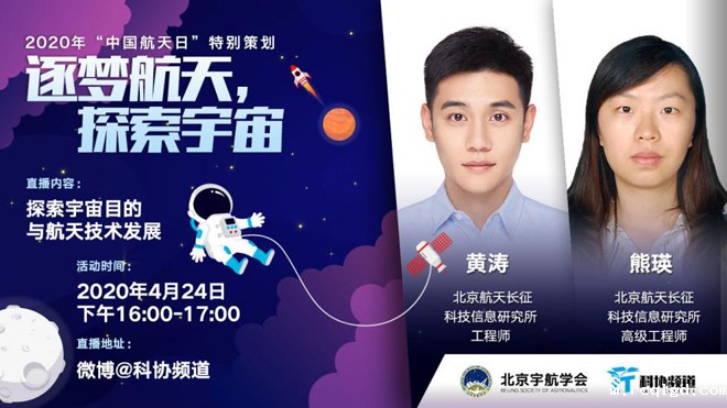 24日下午,北京宇航学会以“逐梦航天 探索宇宙”为主题,在“科协频道”微博进行了网络直播,邀请学会秘书长单位北京航天长征科技信息研究所的两位航天科技工作者,在线上为公众介绍了人类探索宇宙的目的以及世界航天技术发展。一个小时的直播过程中,观众提问踊跃,两位主播回答认真、专业,与网友互动积极,网友好评、点赞不断。据统计,此次科普直播实时累计观看人数33.6万,获得了较好的效果。