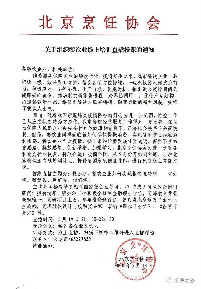 服务企业 | 活动预告:关于组织餐饮业线上培训直播授课的通知