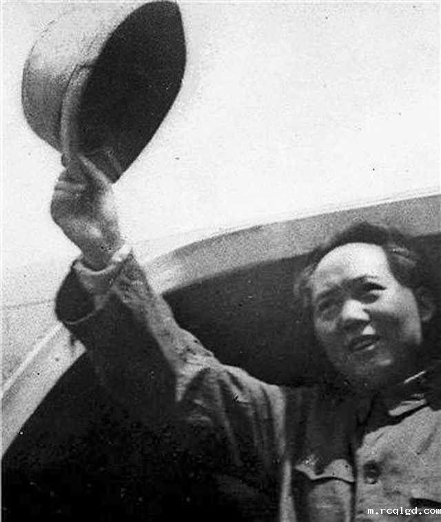 1945年8月28日下午3点36分,毛泽东、周恩来一行乘坐的476650号军用飞机在重庆九龙坡机场着陆。头戴灰色拿破仑帽、身着中山装的毛泽东第一个走出机舱,并向在场的人们挥手致意。