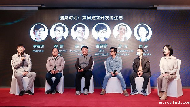 圆桌论坛环节,开源布道师王蕴博、SphereEX公司创始人张亮、Apache Foundation Member郭炜、腾讯开源联盟主席单致豪、京东基础体验设计部NutUI负责人周涛、PingCAP社区运营负责人刘辰六位嘉宾,围绕“如何建立开发者生态”展开圆桌对话,就什么是开源生态、如何构建良好的开源生态、如何运用更好的模式与框架促进开源生态发展等话题,结合自身经验与现场有“源”人互动交流。