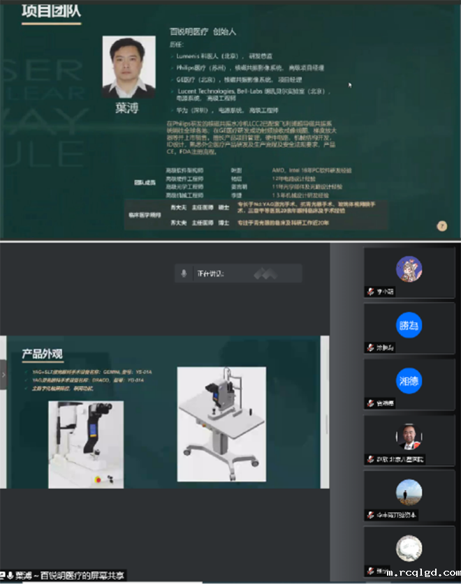百锐明医疗科技是一家专注于眼科激光手术治疗设备的高科技公司。公司的愿景是实现高性能眼科激光手术治疗设备进口产品替代及创新的推动者,为广大眼疾患者提供安全有效的眼科医疗器械。公司创始人叶浦先生曾历任Lumenis科医人眼科医疗设备研发总监,GE/Philips磁共振影像系统项目研发经理,具备多年复杂医疗设备产品研发经验。在成立百锐明医疗科技公司后,带领团队经过三年艰苦努力,成功研发出具有完全自主知识产权的国内首台YAG/SLT二合一激光眼科手术设备,可广泛用于白内障后发障,青光眼,玻璃体消融以及飞蚊症等的激光手术治疗。其产品性能及技术指标达到或超过国外同类进口设备,具有激光能量输出精度高(YAG输出精度误差可控制在+-5%以内);高质量的高斯光斑输出,确保高质量的手术效果;高速率激光发射(每秒可发射激光3次以上)确保流畅的手术操作体验;全数字化操作,简单易用;创新的HUD oled显示;LCD显示和机身一体化,支持多点触控;便携移动设计,机身小巧灵活,用于治疗开角型青光眼的SLT激光,为国内首创。