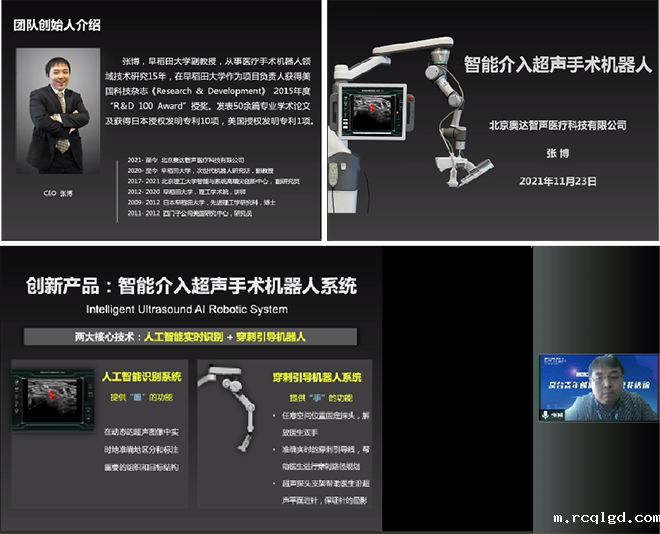 本项目是与北京积水潭医院、中日友好医院、上海市第十人民医院等十多家合作伙伴根据实际临床需求,共同探讨,开发的一款介入超声手术机器人,本项目的关键技术是超声图像人工智能识别技术与机器人精准控制技术的结合。通过人工智能技术帮助年轻医生寻找组织结构,同时通过机器人手臂辅助医生完成精准穿刺,使医生更加关注治疗本身,而非穿刺手法和技巧,从而提高手术成功率和效率,减轻医生负担。
