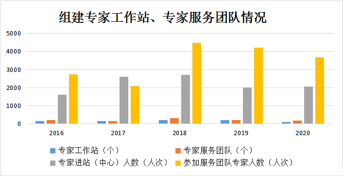 各级科协指导组建专家工作站[15]109个,全年组织进站专家2050人次。组建专家服务团队[16]191个,参加服务团队专家3686人次。