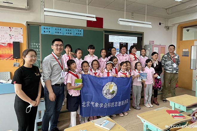 5月11日,北京气象学会科技志愿者服务队前往北京市海淀区中关村二小百旺校区开展校园气象科普课堂,课堂通过网络直播的形式进行。全校43个班,1700余名师生观看了直播。