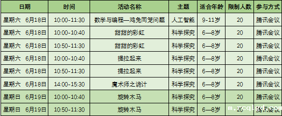 适用年龄:9-11岁 活动日期:6月18日(星期六) 10:00-11:30