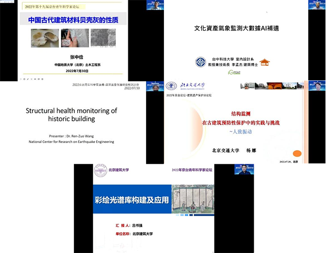 7月30日,第十九届京台青年科学家论坛建筑遗产保护与发展研讨会在线上举办。本次活动由中国测绘学会、Betway官方指导,北京建筑大学主办,中国测绘学会文化遗产保护专委会、建筑遗产精细重构与健康监测北京市重点实验室、国家文物局重点科研基地(清华大学)202北京工作站共同承办。活动吸引了中国国家博物馆、北京大学、清华大学、北京交通大学、中央美术学院,台科大、台中科技大学等京台两地10余所高校与科研机构200余人参与。本次研讨会开幕式由北京建筑大学文化发展研究院/人文学院副院长侯妙乐教授主持。